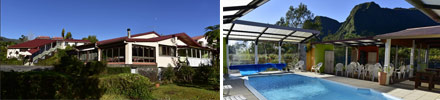 Ausstattung: Das Hotel-Restaurant im kreolischen Stil besticht nicht nur mit seinem reichhaltigen Angebot an Speisen sondern auch mit einem Panoramaausblick über den Cirque de Salazie.