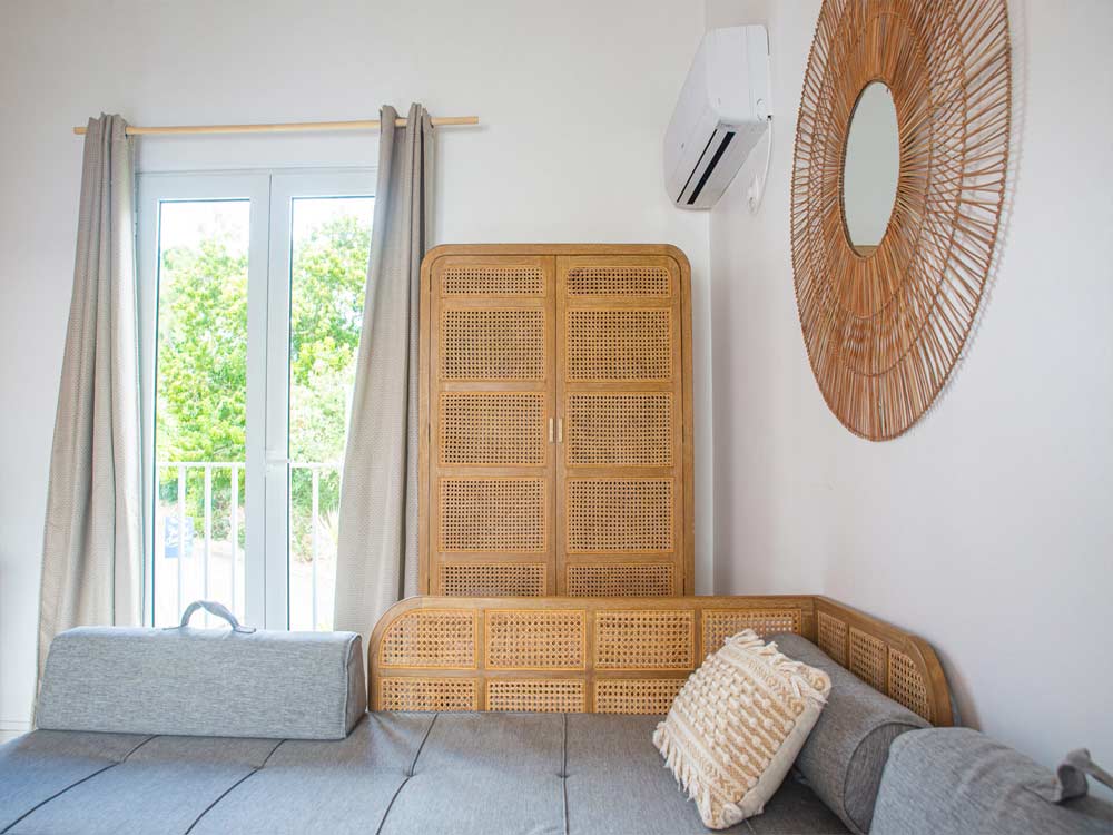 Die Junior-Appartements (1-3 Pers.) verfügen über: 1 Wohnzimmer mit Doppelbett und 1 Couch, 1 Bad mit Dusche und separatem WC, Klimaanlage und einer Terrasse im EG mit Kitchenette & Blick zum Garten. 2 Junior Suiten sind behindertengerecht eingerichtet.