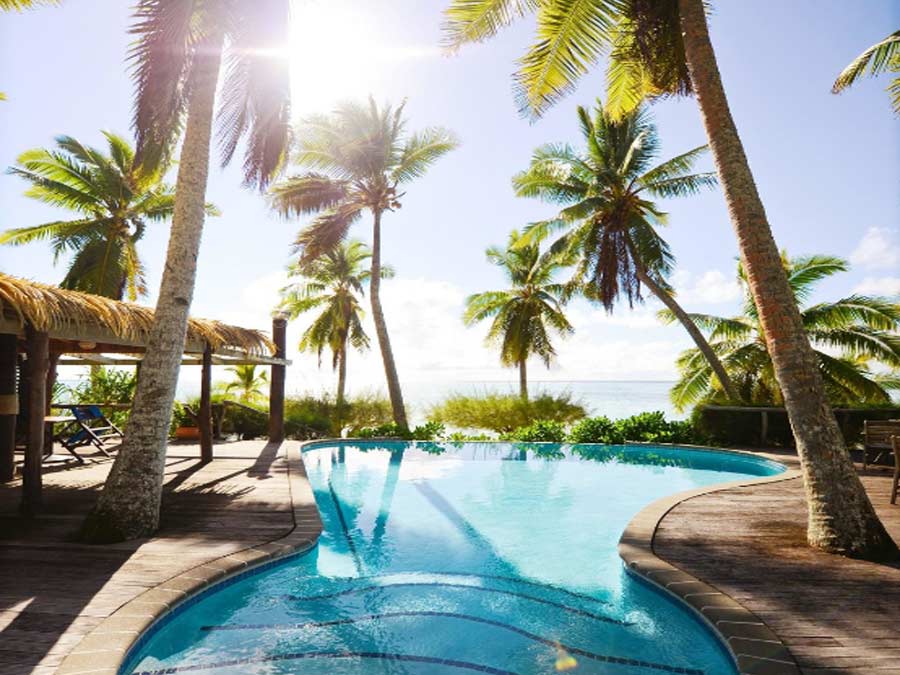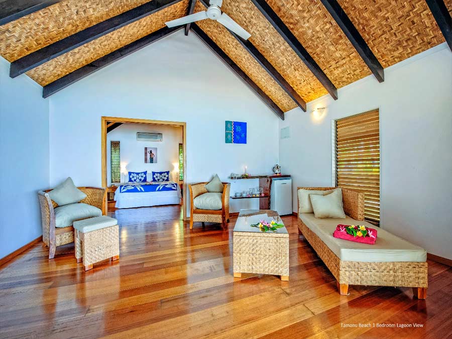 Lage: Tamanu Beach Resort befindet sich an einem wunderschönen weißen Sandstrand im Westen der Insel Aitutaki. Der Zielflughafen Rarotonga ist in ca. 45 Minuten per Inlandflug zu erreichen. Der Flughafen Aitutaki liegt in ca. 4km Entfernung.Beschreibung: Die Anlage liegt inmitten eines Palmenhains und verführt durch die romantische Lagune und den herrlichen Blick auf den Sonnenuntergang. Bestehend aus den beiden Schwesternanlagen Tamanu Bungalows und Manea Suites verfügt sie über eine Rezeption, Lobby, 2 Swimmingpools mit Sonnenschirmen und Liegen und einen Souvenirladen.