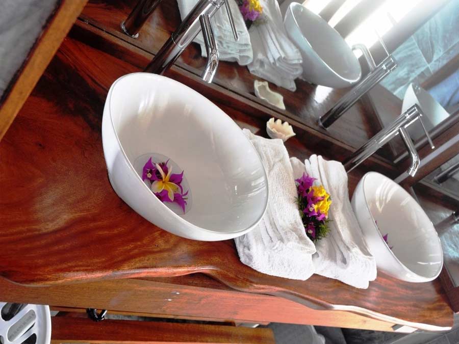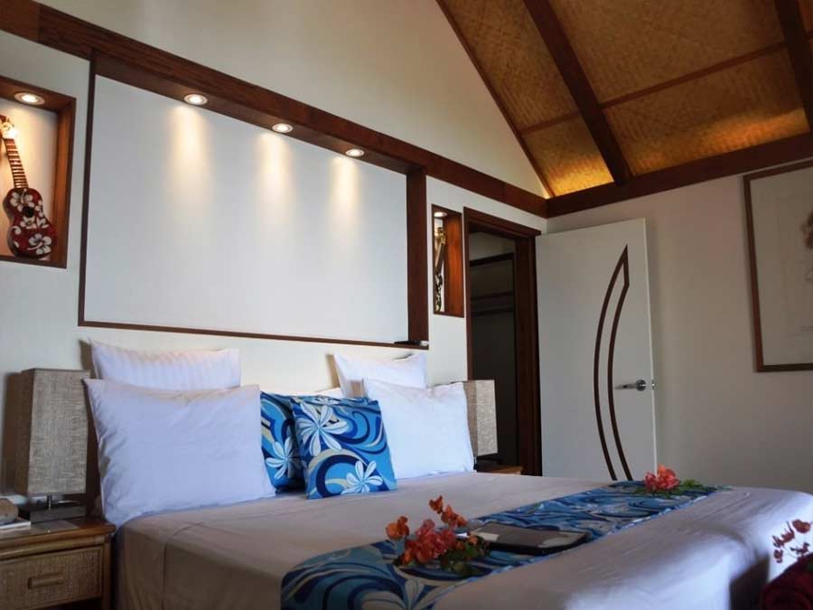 Zimmer: Die insgesamt 22 Bungalows sind geschmackvoll im polynesischen Stil eingerichtet und unterteilen sich in folgende Kategorien: - Studio Garten Bungalow: sind in der Nähe der Lagune und des Strandes gelegen, verfügen über Dusche/ WC/ Föhn, Telefon, Klimaanlage, Deckenventilator, Küchenzeile mit Kühlschrank, Herd und Mikrowelle, Kaffee-/ Teekocher, Safe und Terrasse mit Gartenblick