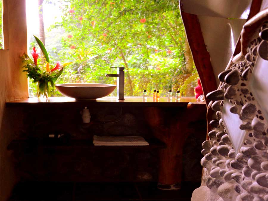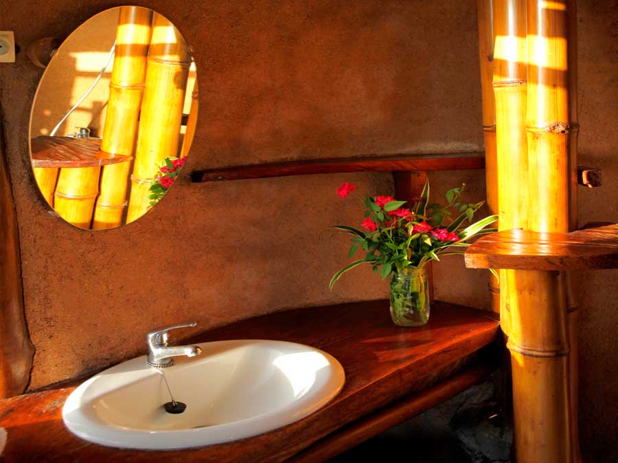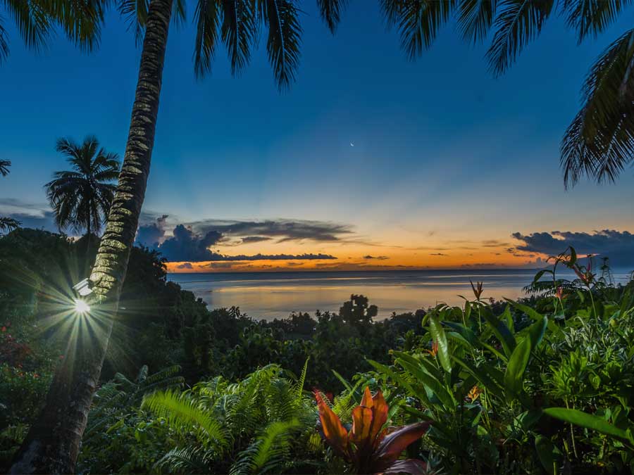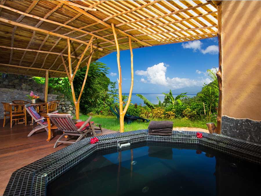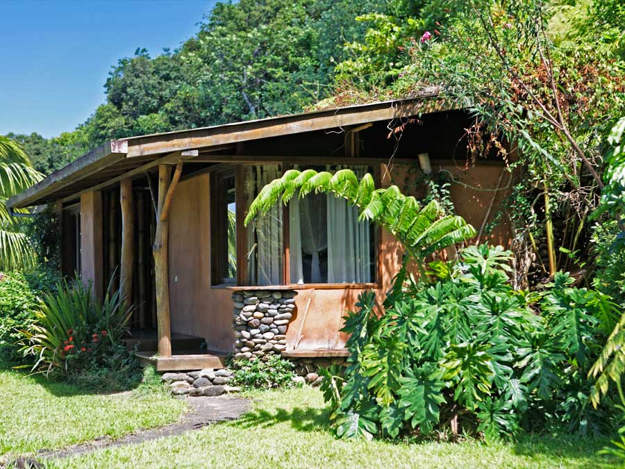 Bungalows: Die 4 niedlichen Bungalows haben Hanglage und bieten einen traumhaften Blick über die Lagune. Die Bungalows in traditionell-polynesischer Bauweise sind sehr geräumig und fügen sich harmonisch in die Landschaft ein. Sie bieten Platz für 4 Personen, eine Küche, Kühlschrank, Terrasse, Moskitonetz, Bad/ WC, Wohnbereich mit 2 Einzelbetten und Schlafzimmer mit Doppelbett, Ventilator.