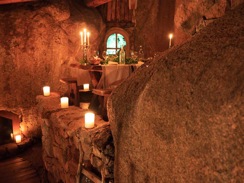 La Table de la Grotte - Das Restaurant La Grotte ('die Grotte') lädt Sie in seine warme und festliche Höhle ein, um eine traditionelle, rustikale Küche am Kamin zu genießen. Das Restaurant beeindruckt durch seine einmalige Architektur: So ist es in einen Felsen hineingebaut und bietet einen ebenfalls in den Fels gehauenen Weinkeller sowie im Sommer exklusive Panoramaterrassen zwischen den massiven Felsbrocken.