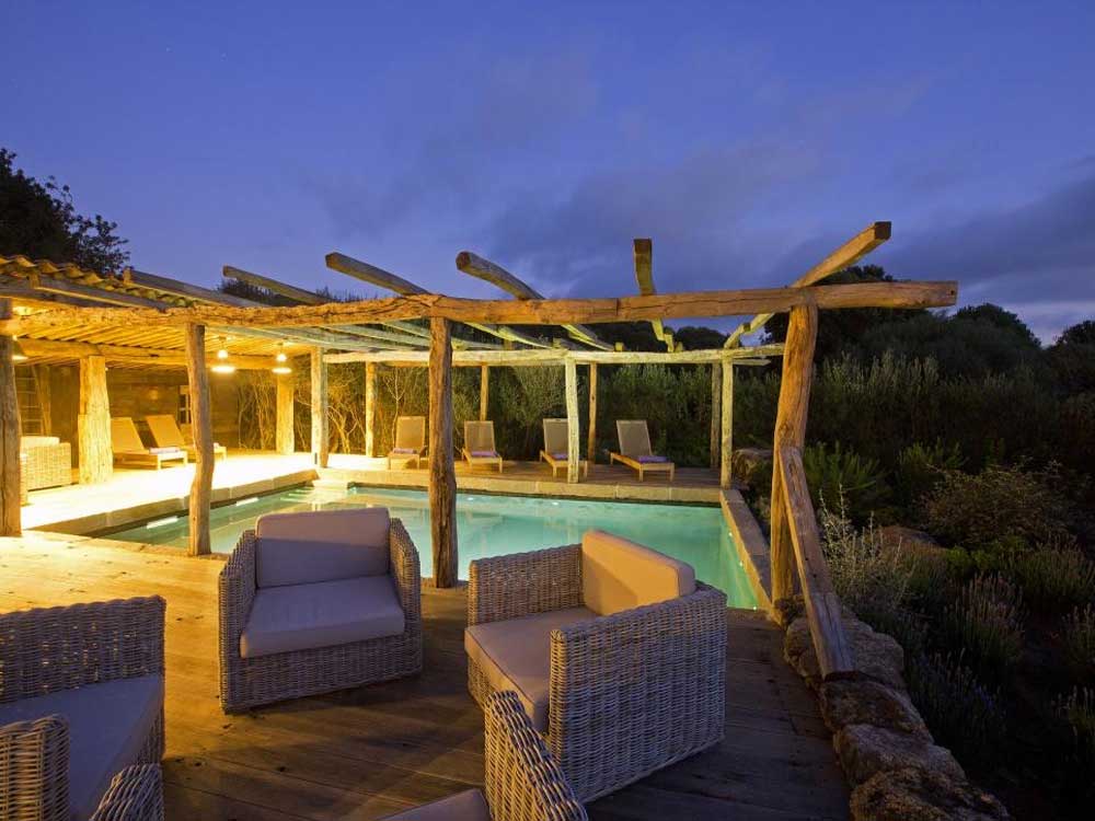 Im Außenbereich befindet sich ein Poolhaus mit einem Schlafbereich für zwei Personen, mit Bad (Dusche und WC), sowie eine große überdachte Sommerküche mit Essbereich (von Frühjahr bis Herbst) mit: Grill, Gasherd, Kühl-Gefrierschrank, Geschirrspüler, Eismaschine, Kaffeemaschine und Waschküche. Entspannen Sie sich in der schönen Sommerlounge und im Dampfbad. Das Schwimmbad (beheizt von April bis Oktober) ist in den Felsen gehauen.