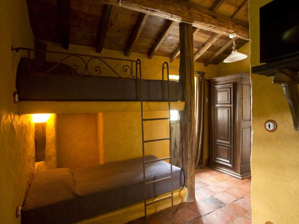 Das Haus verfügt über ein Wohnzimmer mit Kamin (Fernseher, DVD-Player und Dockingstation), eine voll ausgestattete Küche (zu den Annehmlichkeiten gehören: Kühl-Gefrierschrank, Gasherd, Geschirrspüler, Mikrowelle und Kaffeemaschine) und einen Essbereich. Das Hauptschlafzimmer (ein Doppelbett oder zwei Einzelbetten) ist mit einem Fernseher ausgestattet und hat ein eigenes Bad mit Stehdusche und WC. Ein zweites Zimmer bietet 4 Etagenbetten (mit Fernseher) und ein eigenes Bad mit Stehdusche und WC.