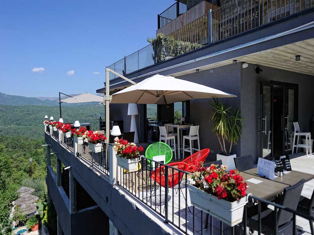 Kleines Hotel in Höhenlage mit Blick auf das Tal